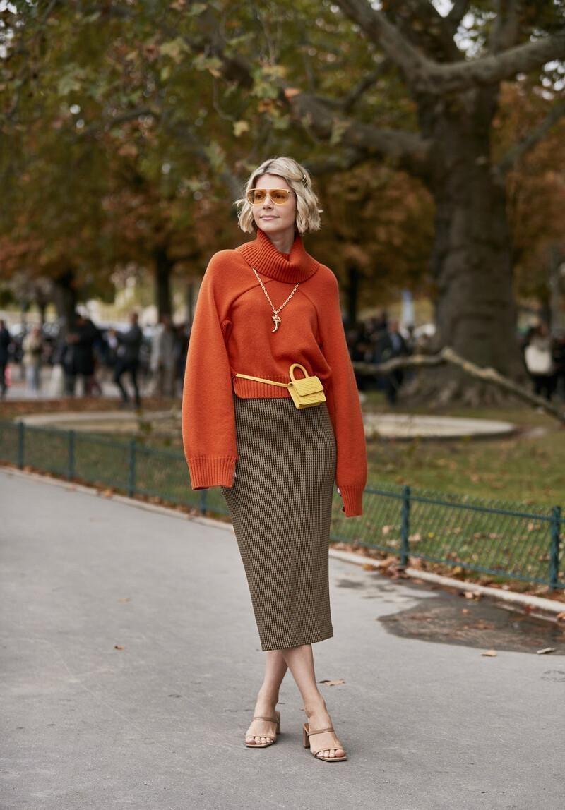 用腰包来与针织衫和半身裙进行搭配,不仅能够展现出很强的时尚感,还能够解放双手,更加方便了。