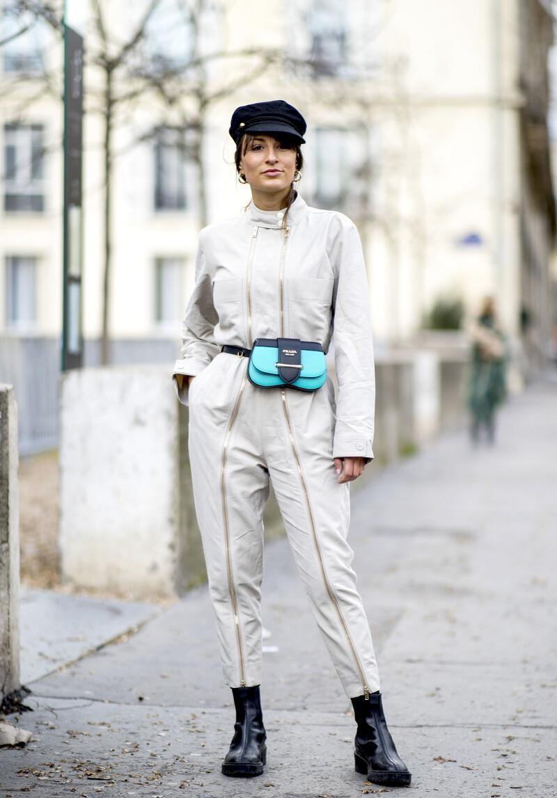 腰包本身就是一种比较中性的单品,而连体裤也会给人十分帅气的感觉,所以这两种单品搭配在一起也是很不错的了。