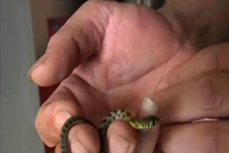 黄开宁本以为是泥鳅,准备丢到一边时,发现这个“泥鳅”竟然会吐舌头,他不寒而栗,定睛一看,才知道这是一条小蛇,而黄开宁从小就胆子大,蛇更是见过许多,可这条蛇像是刚出生一样,让黄开宁心生喜爱,准备拿回来好好研究一下