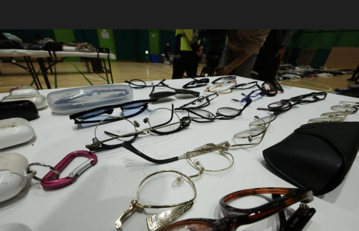 失物招领处设在一家体育馆内,场馆地面和桌子上摆满了个人物品,包括124个包、258件衣服、256双鞋子和156个电子产品等。很多衣服和鞋子上满是污渍,甚至沾有明显的血迹。还有皮鞋的鞋跟脱落,有眼镜镜腿被折断、镜片被踩碎。