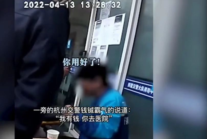 浙江杭州,一位外卖小哥突发哮喘,被交警送到附近的值班亭。