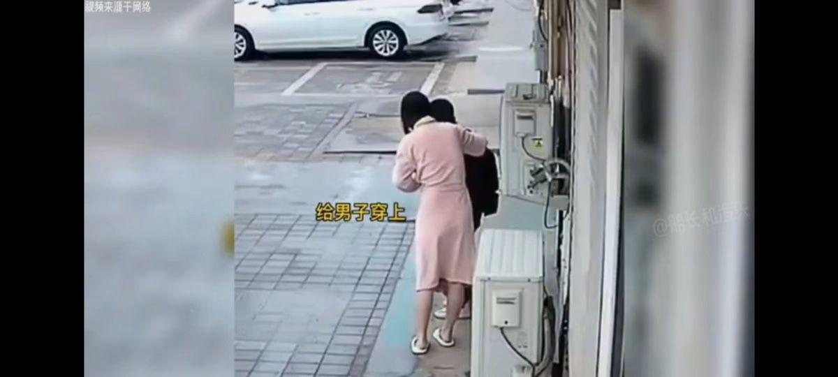 老板赶紧打开卷帘门,把老公的羽绒服送给了他。